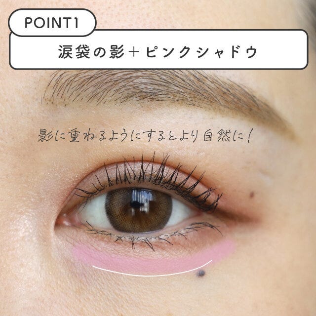 涙袋のぷっくり感と血色感がプラスされ自然な涙袋メイクが完成します。