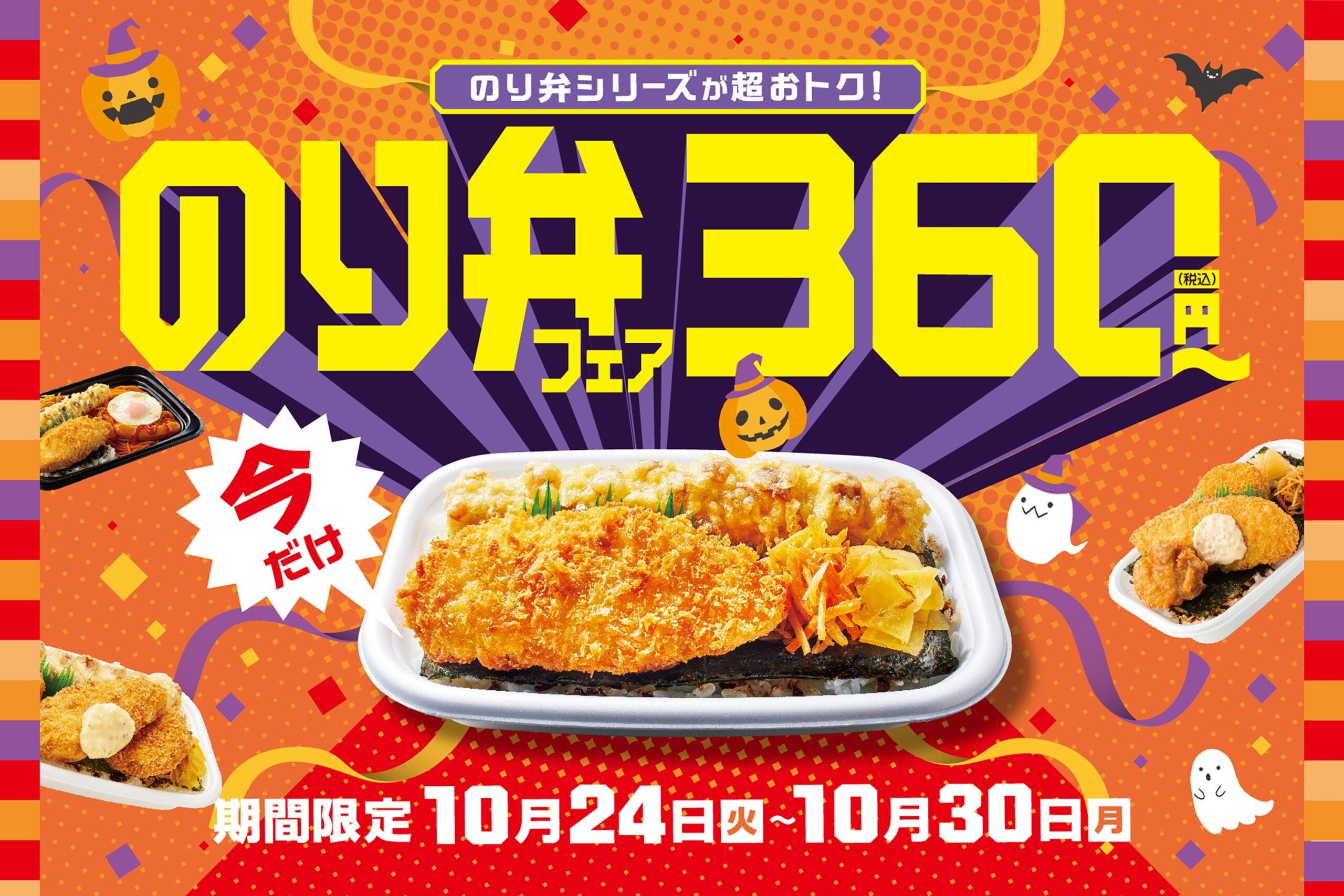 持ち帰り弁当チェーン・ほっともっと(Hotto Motto) が、10月24日~30日までの7日間限定で人気商品の『のり弁当』を含む4商品を値引きするキャンペーンを開催する。