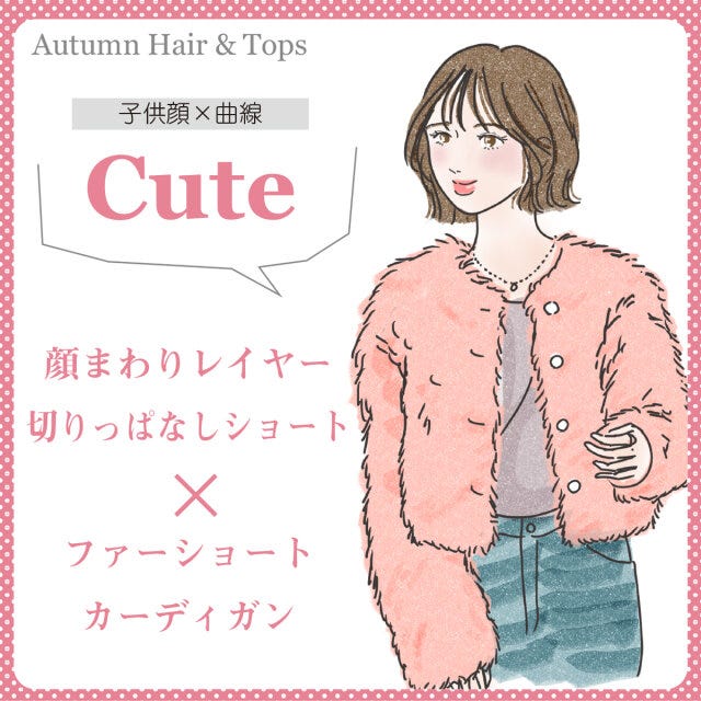 キュートさんのヘアスタイルは、トレンドの切りっぱなしボブヘアがおすすめ。
