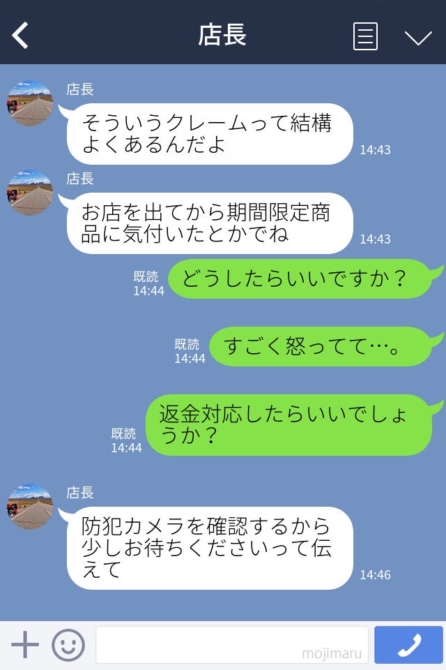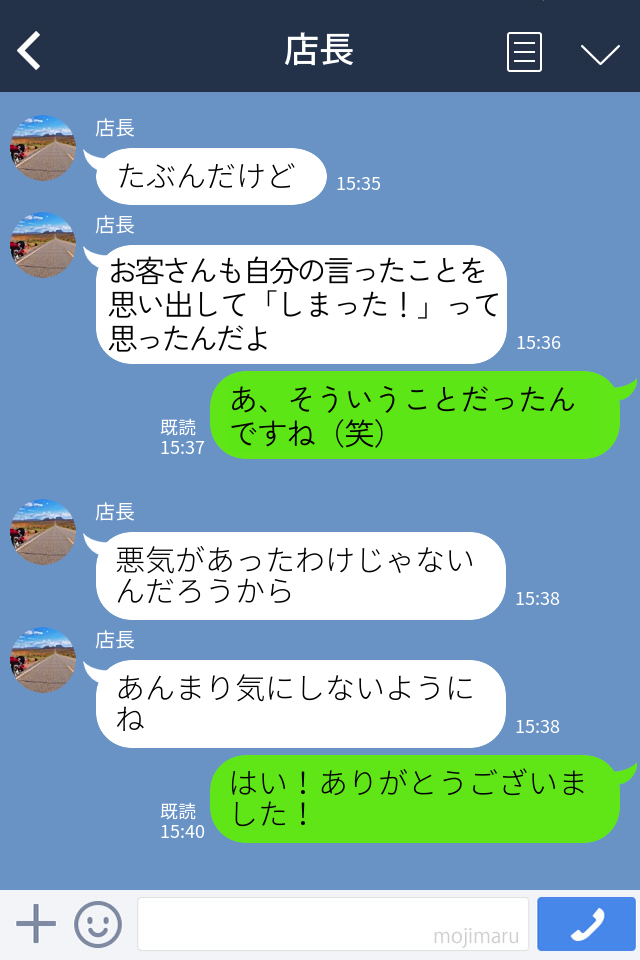お客さんの勘違いによるクレームを解決してくれた店長。