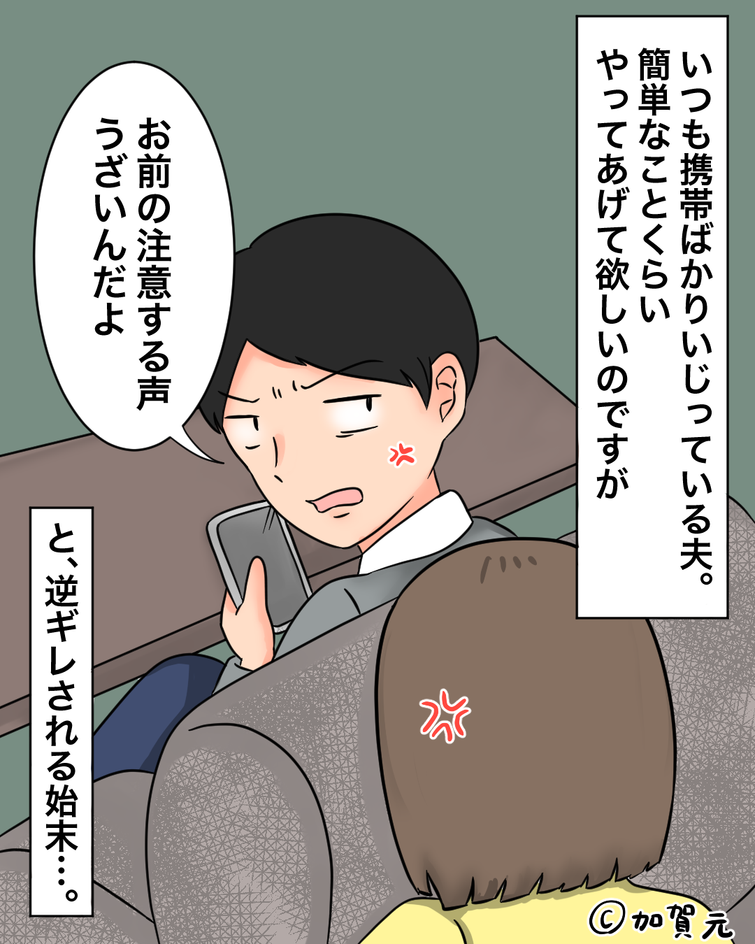 ある日、義実家に帰省したときも、夫は携帯ばかりいじっていて…。