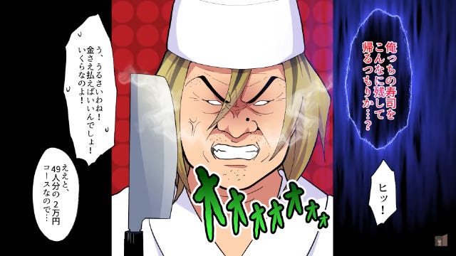女性社員は誰も来ない寿司屋で、98万円のお会計を請求されてしまいました。