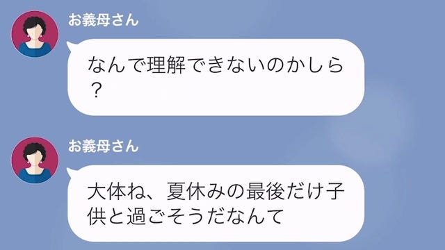 主人公は子どもと過ごす時間を大切にしているので、義母の言うように最後の5日間で信頼関係を作る必要はありません。