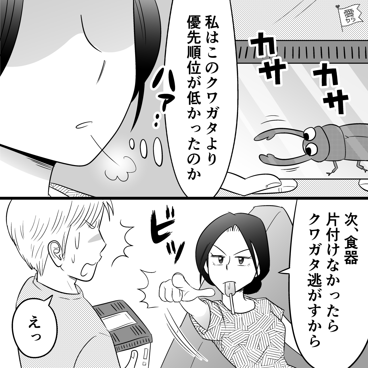 妻が説教中に、クワガタを取りに行くと言い出した夫…。