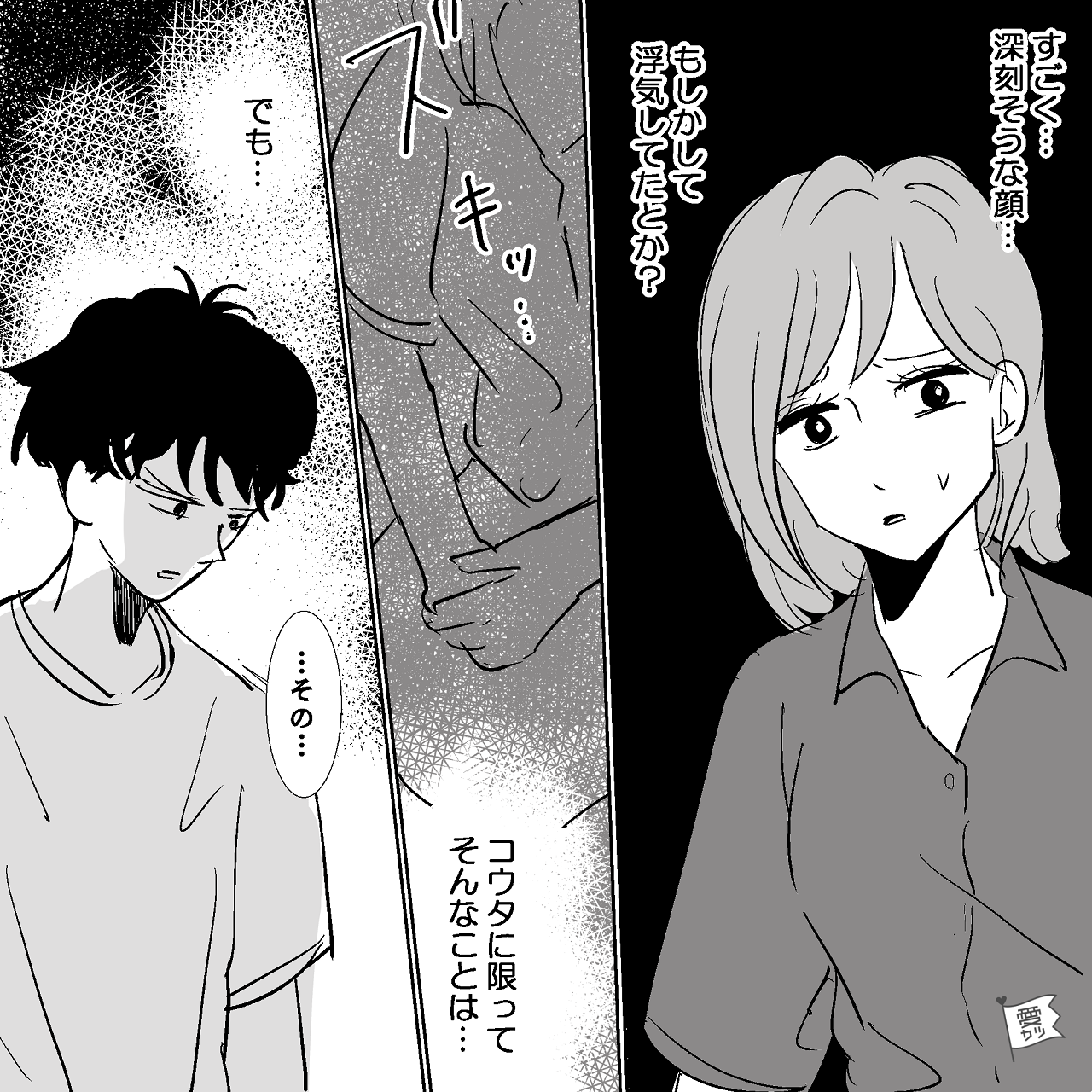 いくら問い詰めても黙ったままの彼を見て、浮気を確信する主人公。