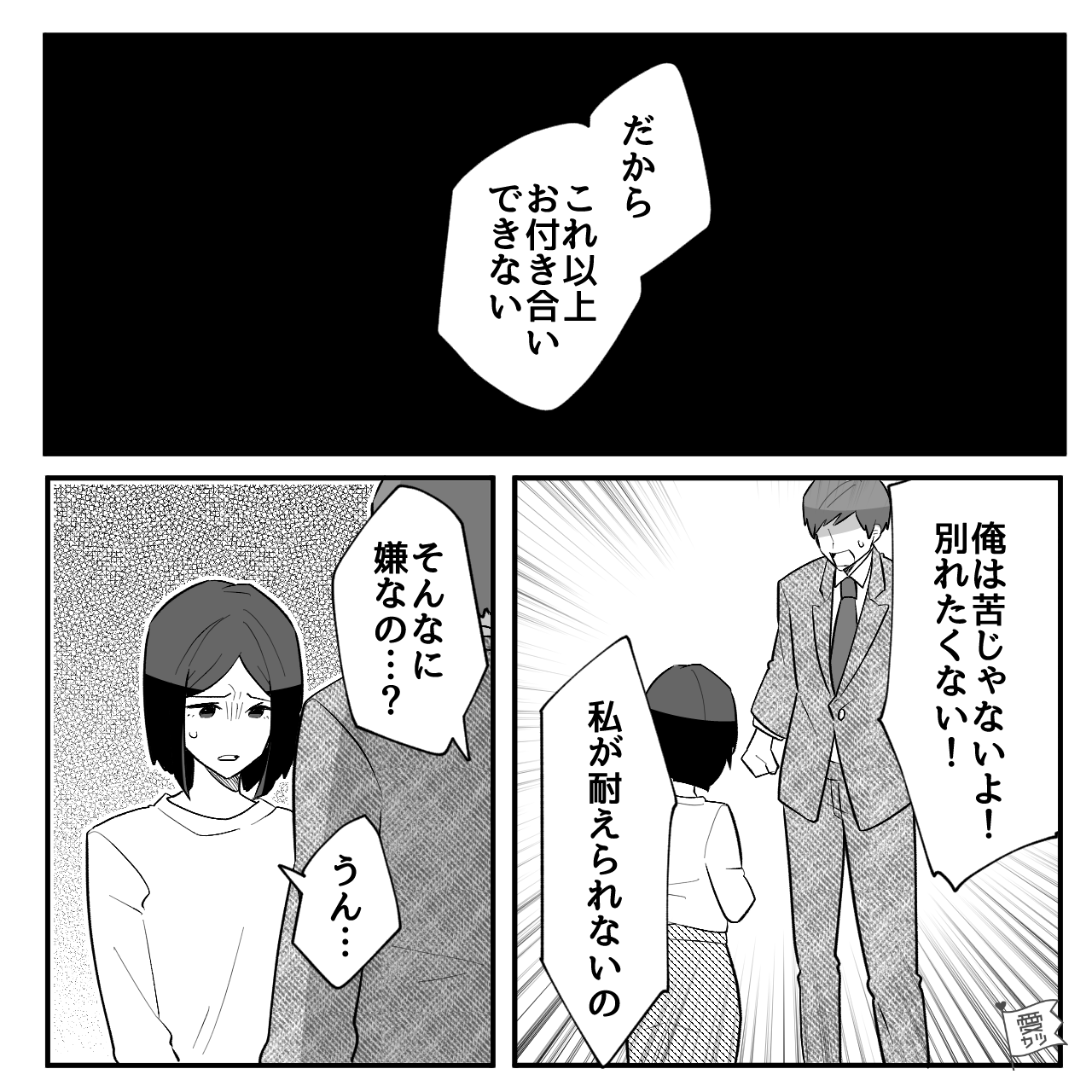 同僚の冷やかしに耐えられず彼氏に別れを告げた主人公。