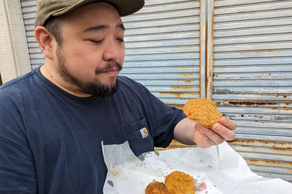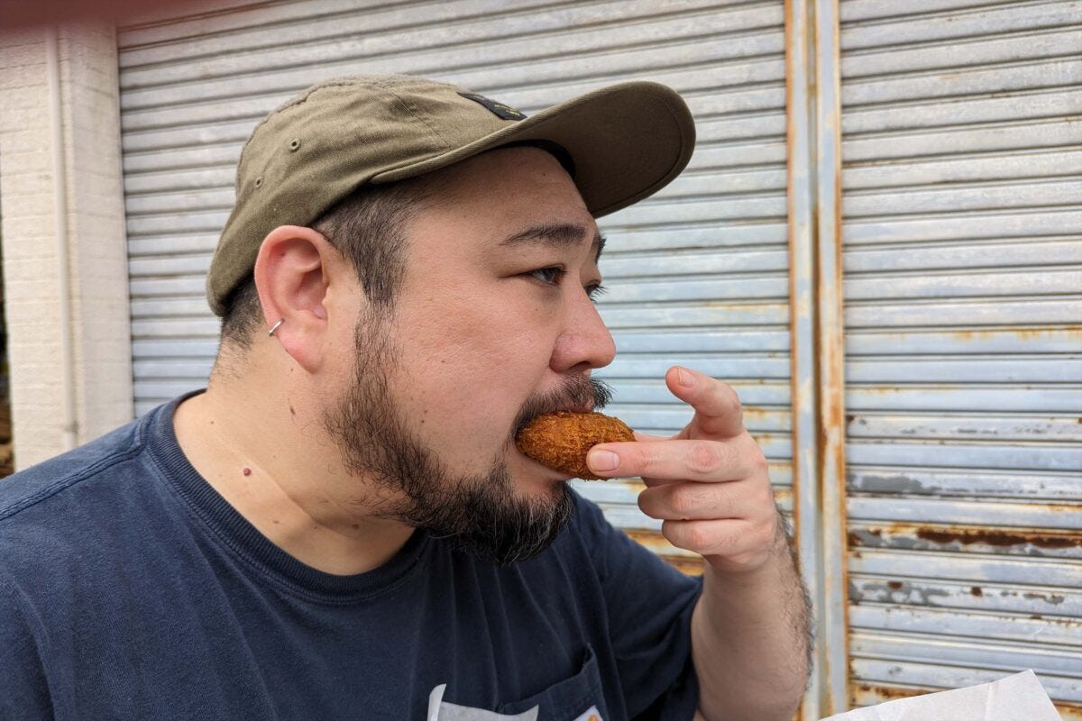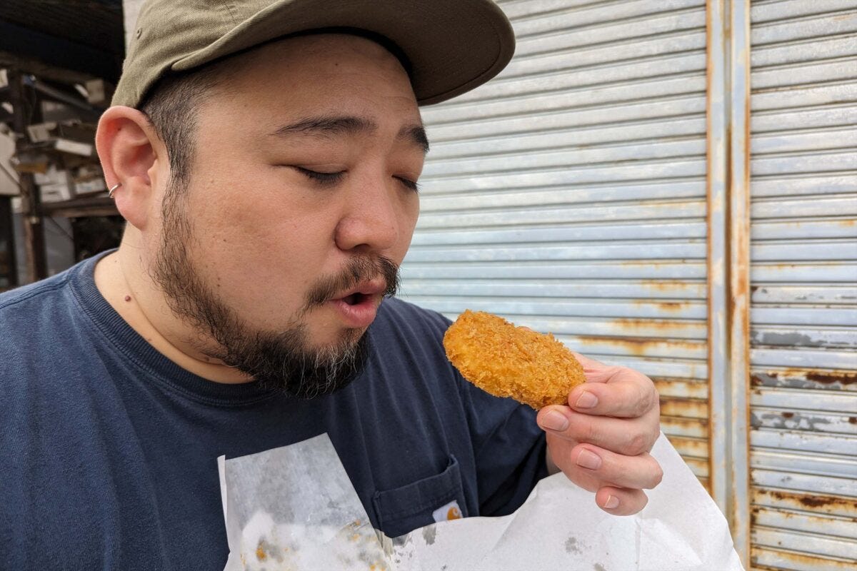 普通のコロッケも「オーソドックスな味付けだけど、コショウが効いていて美味しいですね。揚げたてだから香りが立ってるのかも」と、なかなかの評価。