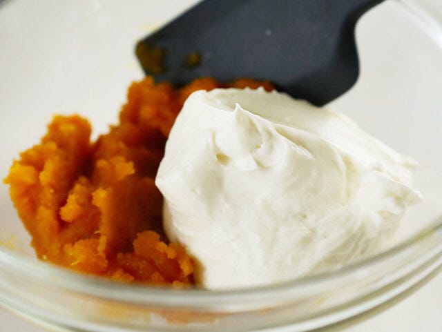 代わりにクリームチーズも使えますが、もっとチーズ感が強くなり、少し固めの仕上がりになります。