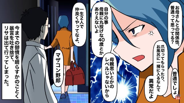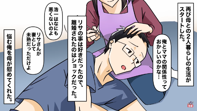 そして結婚生活が始まると、主人公はいつも通り妻の前で、母にお世話をしてもらいました。