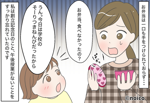 娘のためにお弁当を作った主人公ですが、娘はお昼前に帰宅…。