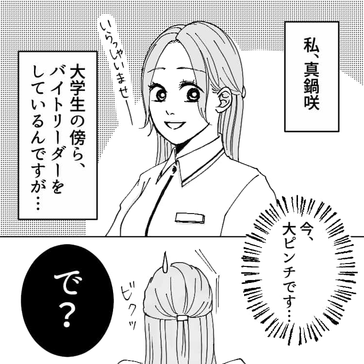 主人公・真鍋咲は大学生の傍ら、バイトリーダーをしています。