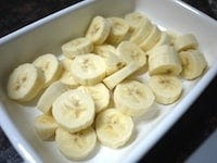 バナナを輪切りにし、保存容器に入れ、冷凍庫で冷凍します。ブルーベリーは冷凍のものはそのまま、生のものはここで一緒に冷凍します。