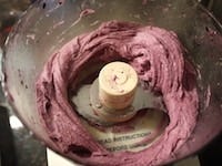 材料が凍ったら、フードプロセッサーにバナナとブルーベリーをかけます。