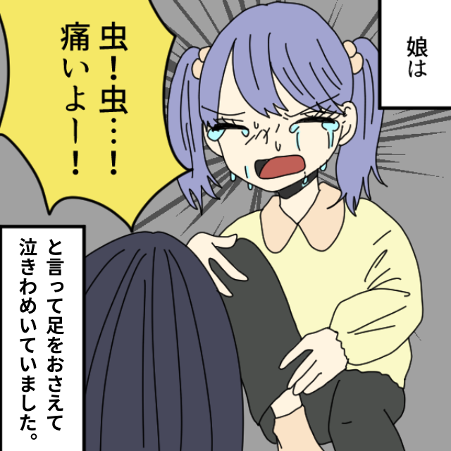 足をおさえて泣きわめく娘を見た主人公はとっさにズボンをめくりました。