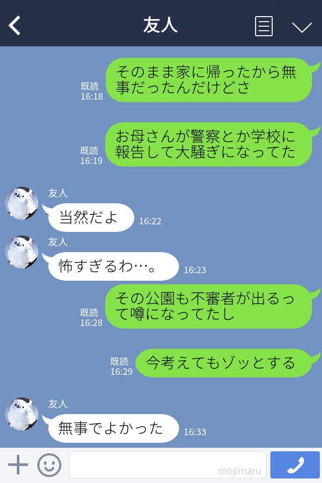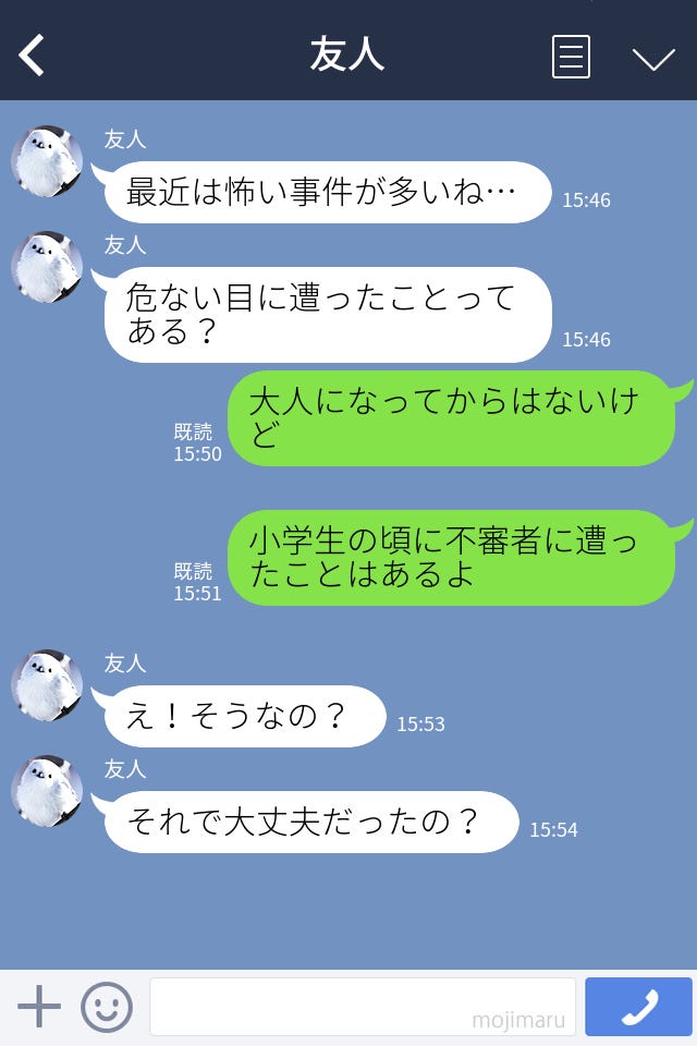 不審者に目をつけられて、とっさの判断で危険を回避した主人公とその友達。