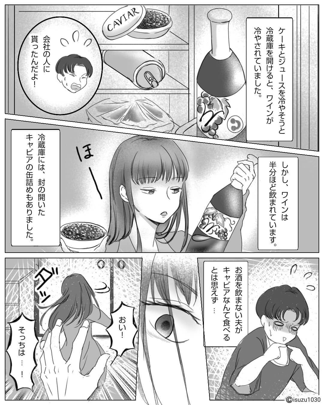ですが、不吉な予感がした主人公は、夫の誕生日にサプライズで夫のもとへ訪問したのです。