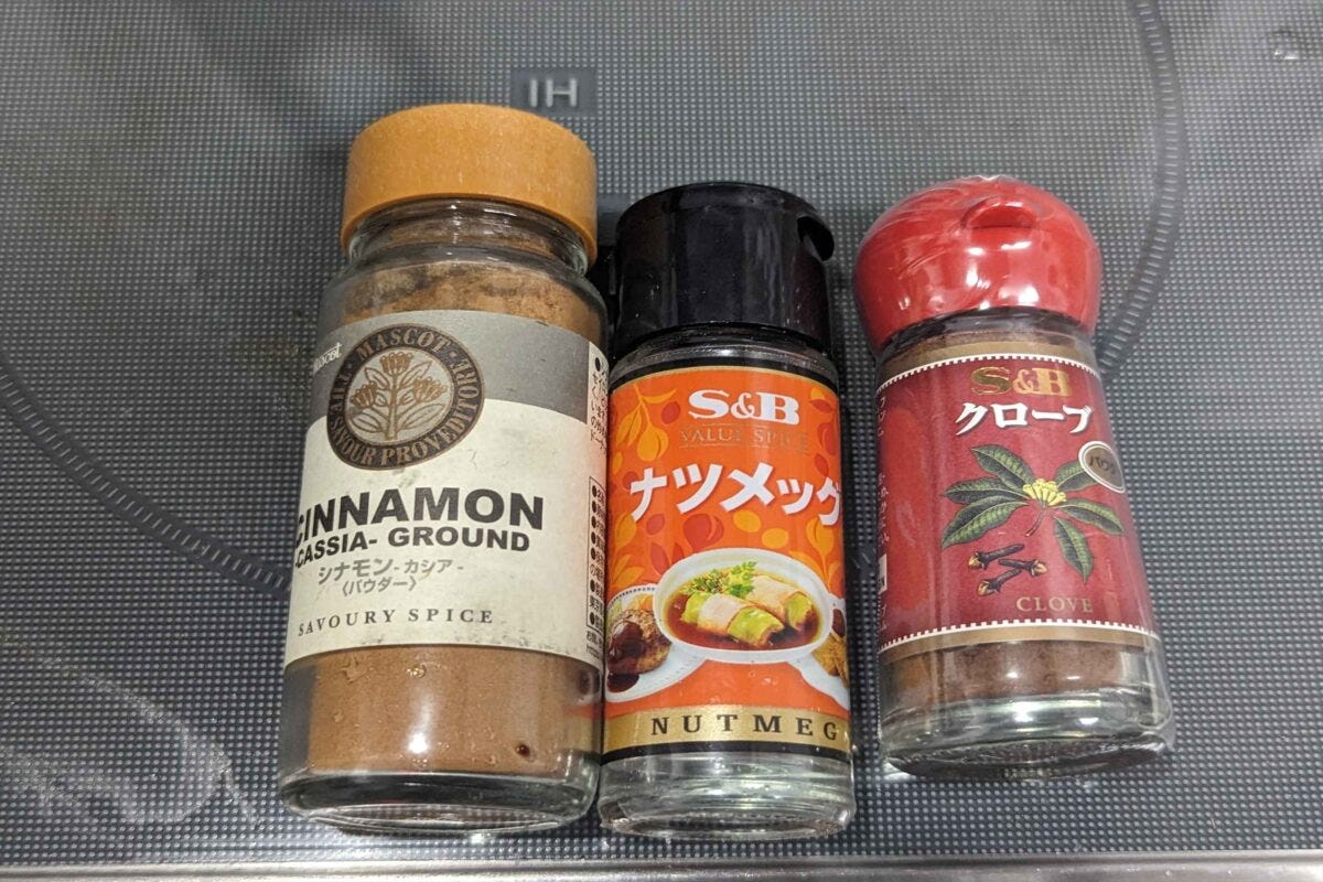 と、衣用のパン粉・卵・小麦粉のみ。室井さんいわく、スパイスの中でもクローブは絶対忘れてはいけないスパイスで「これを入れると美味しい」のだという。また、シナモンとナツメグは無くても良いそうなので、お好みで有り無しを決めていいだろう。