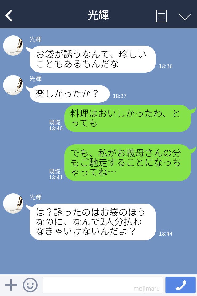 お会計は別々だと思っていた主人公は、その後義母がとった行動に驚愕することに…。