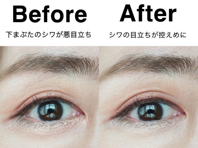 シワを目立たせないためには何も塗らないのがベストですが、目が小さく見えたり、上まぶたとのメイクバランスが崩れたりしてしまいます。