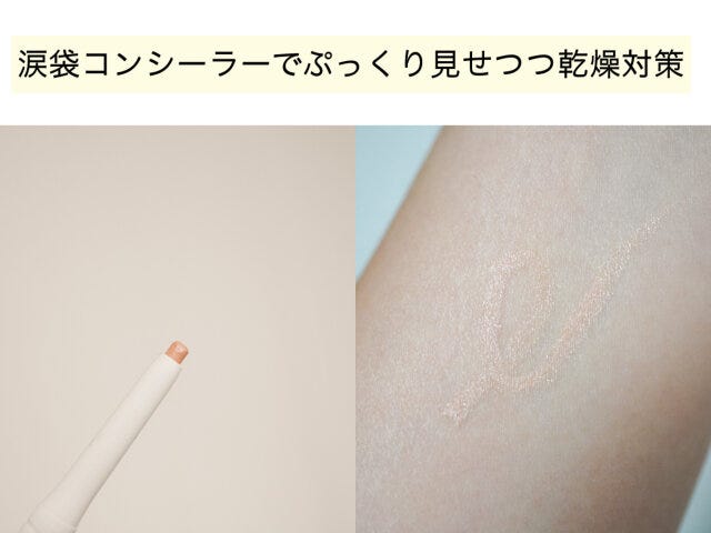 そこでおすすめなのが、涙袋用のコンシーラーやパールタイプのアイライナーです。パウダーアイシャドウのように粉っぽくならず、ライン状に引くため入れる部位も最小限に留めることができ、シワが目立ちにくくなります。