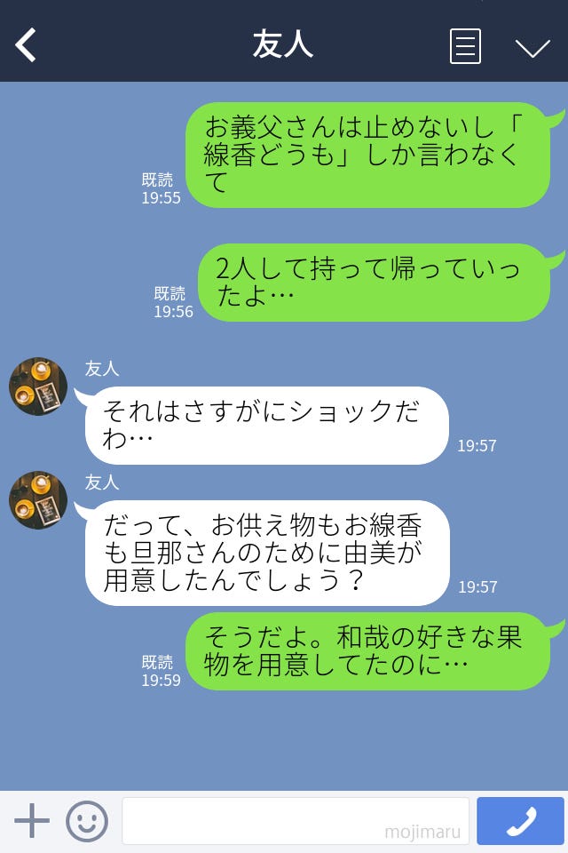平然とお供え物を持っていった義両親に、モヤモヤしてしまった主人公。