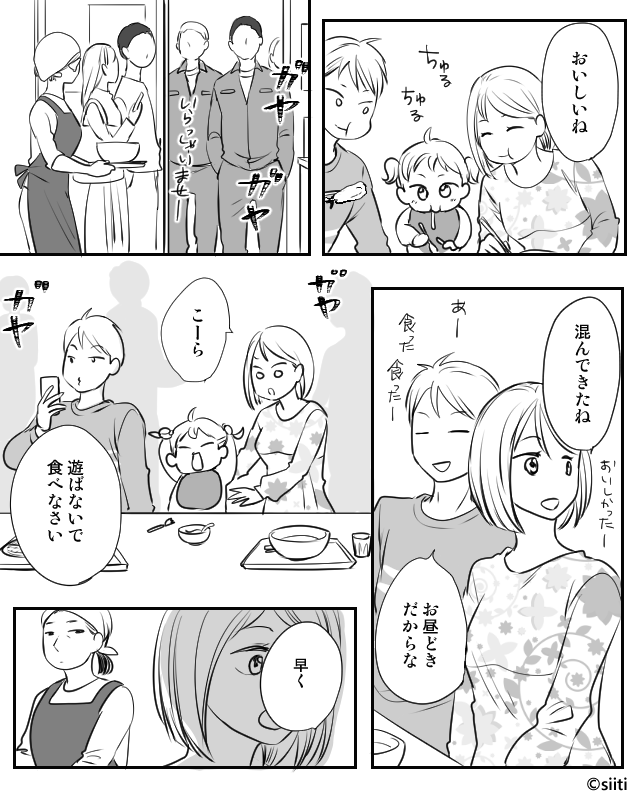 主人公は「遊ばないで食べなさい」と、娘に食べさせることに苦戦していました。