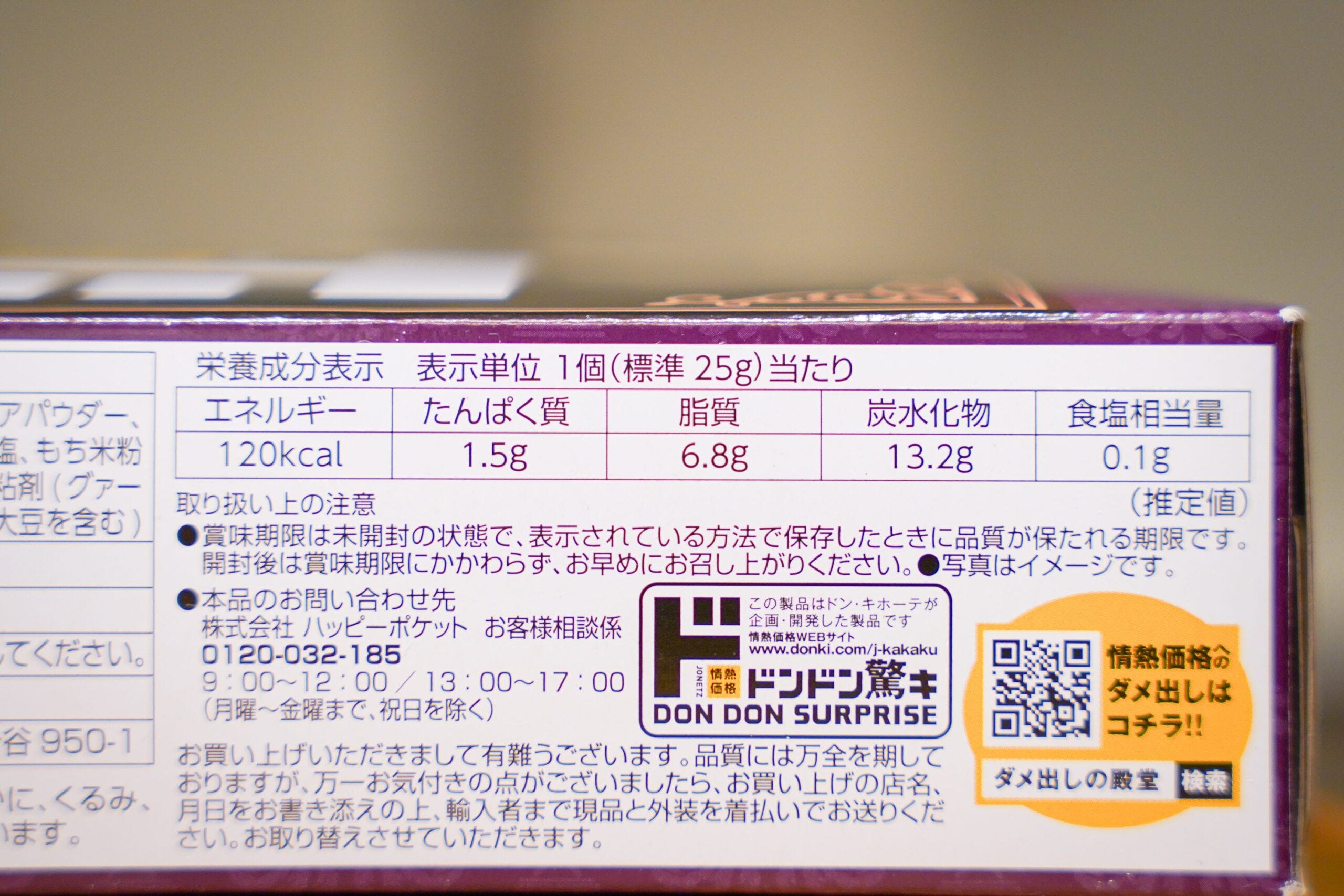 開封すると、大きめサイズのカカオケーキが12個入っていた。個包装であるためシェアしやすく、ちょっとしたおやつにもちょうど良さそう。ちなみに1個で120kcal、脂質6.8gとなっているため、美味しかった場合でも食べ過ぎには注意が必要だ。