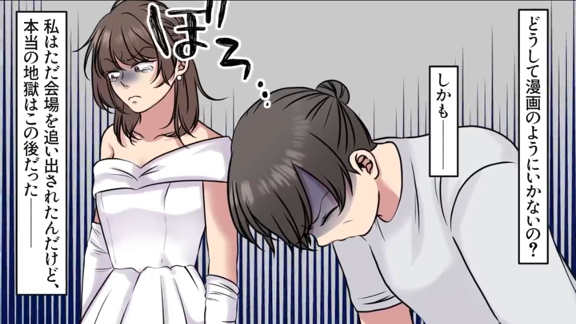 結婚式は中断となり、会場を追い出されてしまった彼女。