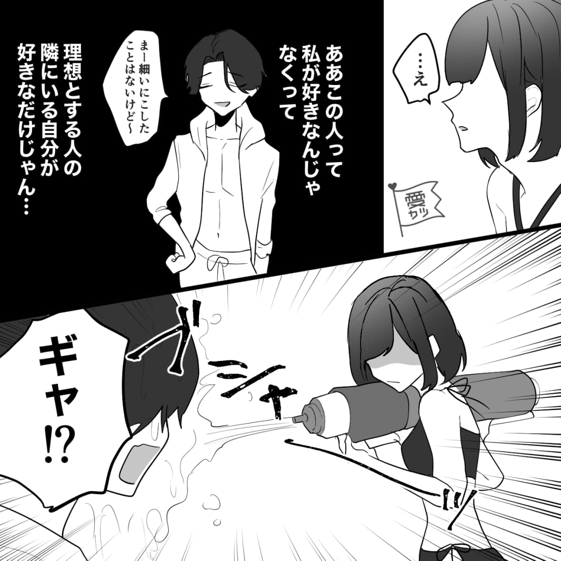 彼氏の本心に気づき水鉄砲で反撃し、日頃思っていたことをぶつけた主人公でした。