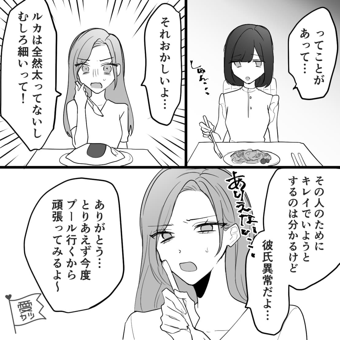 主人公の彼氏は外見にとても厳しく、常に体型管理や制限をされていました。