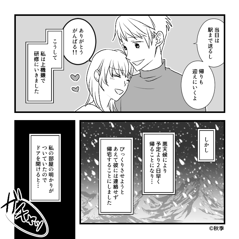 主人公が研修で家をあけている間に、浮気をしていた彼。