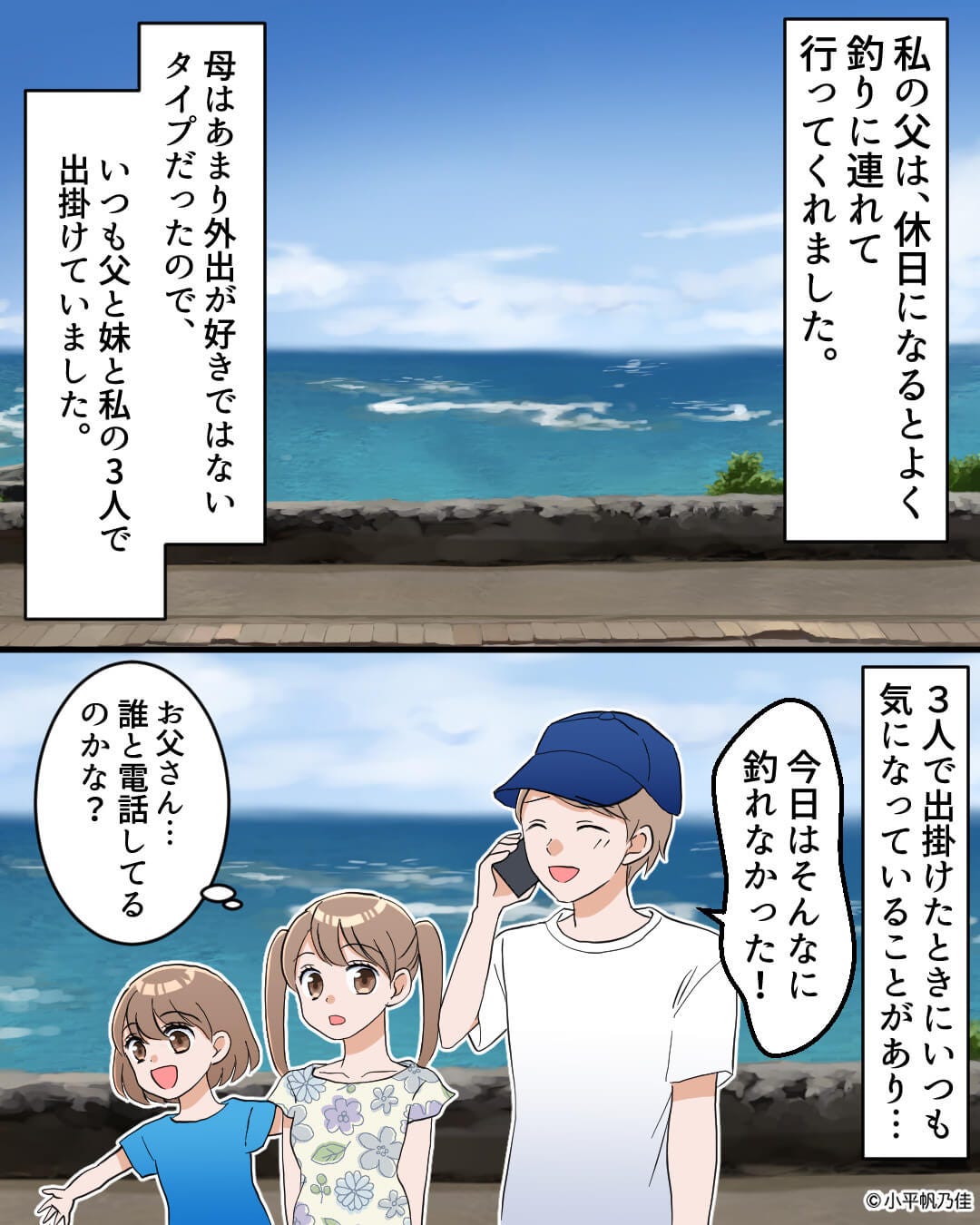 主人公の父は休日になると、主人公と妹を釣りに連れていってくれます。