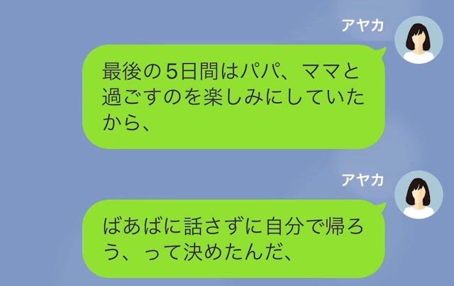 楽しみにしていた自宅での5日間を義母によって阻止されてしまうことを知った子どもは何も言わずに自宅へ帰ったのです。