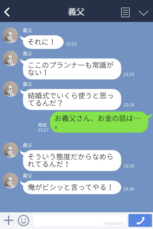 義父に「離婚しろ!」と言われ、唖然としてしまった主人公。