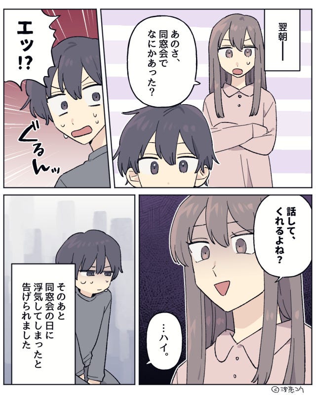 - 【同窓会への参加】を境に彼の態度が急変…!?⇒浮気が発覚した彼は言い訳をはじめて…