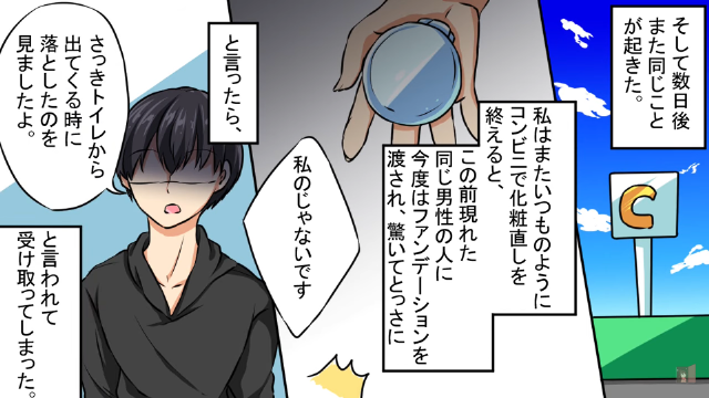 ある日、化粧直しを終えた主人公は男に「これ落としましたよ」と声をかけられました。