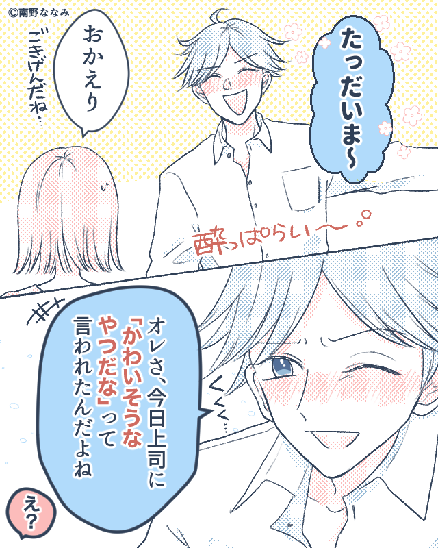 ある日酔っ払って帰ってきた夫が「俺さ、上司にかわいそうなやつだなって言われたんだ」と一言…。