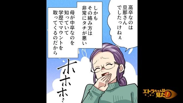 ことあるごとに学歴をひけらかしては主人公の母親にマウントを取るのです。