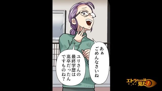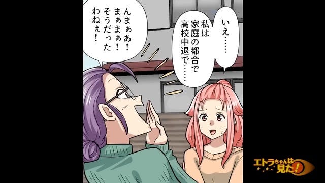 家庭の事情で高校を中退していた母親にわざと高卒と間違えて訂正させる学歴自慢ママ。