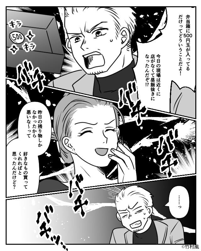 夫は「弁当箱に500円玉が入ってるだけってどういうことだよ!」と言いました。