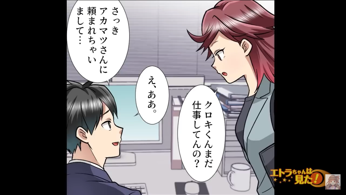 まだ仕事をしている主人公に気がついた女性社員が、声をかけてくれました。
