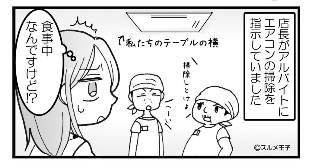 食事をしている主人公の横で、エアコン掃除を始められてしまったのです…。