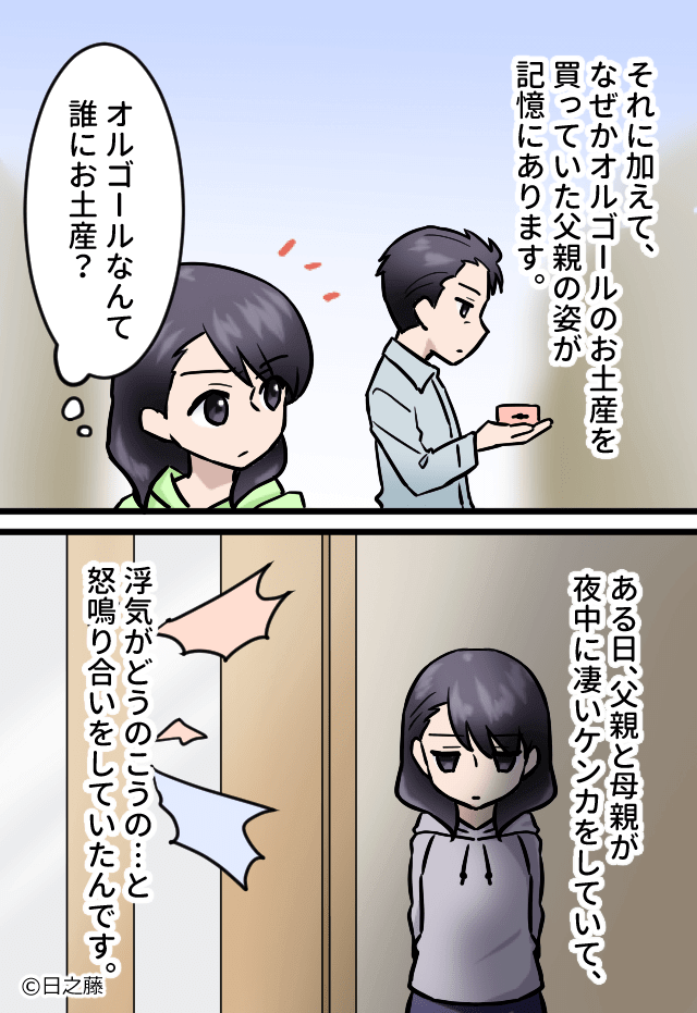 オルゴールの行方を巡って、父と母がケンカをしてしまいます。