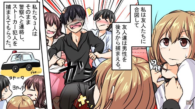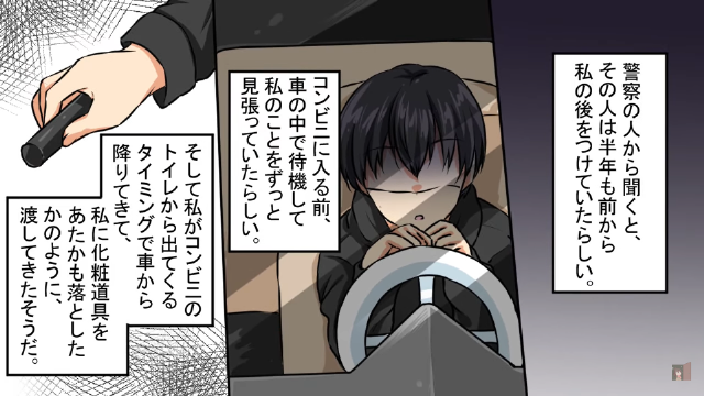 男にストーカーされていると気づき、警察を頼った主人公。