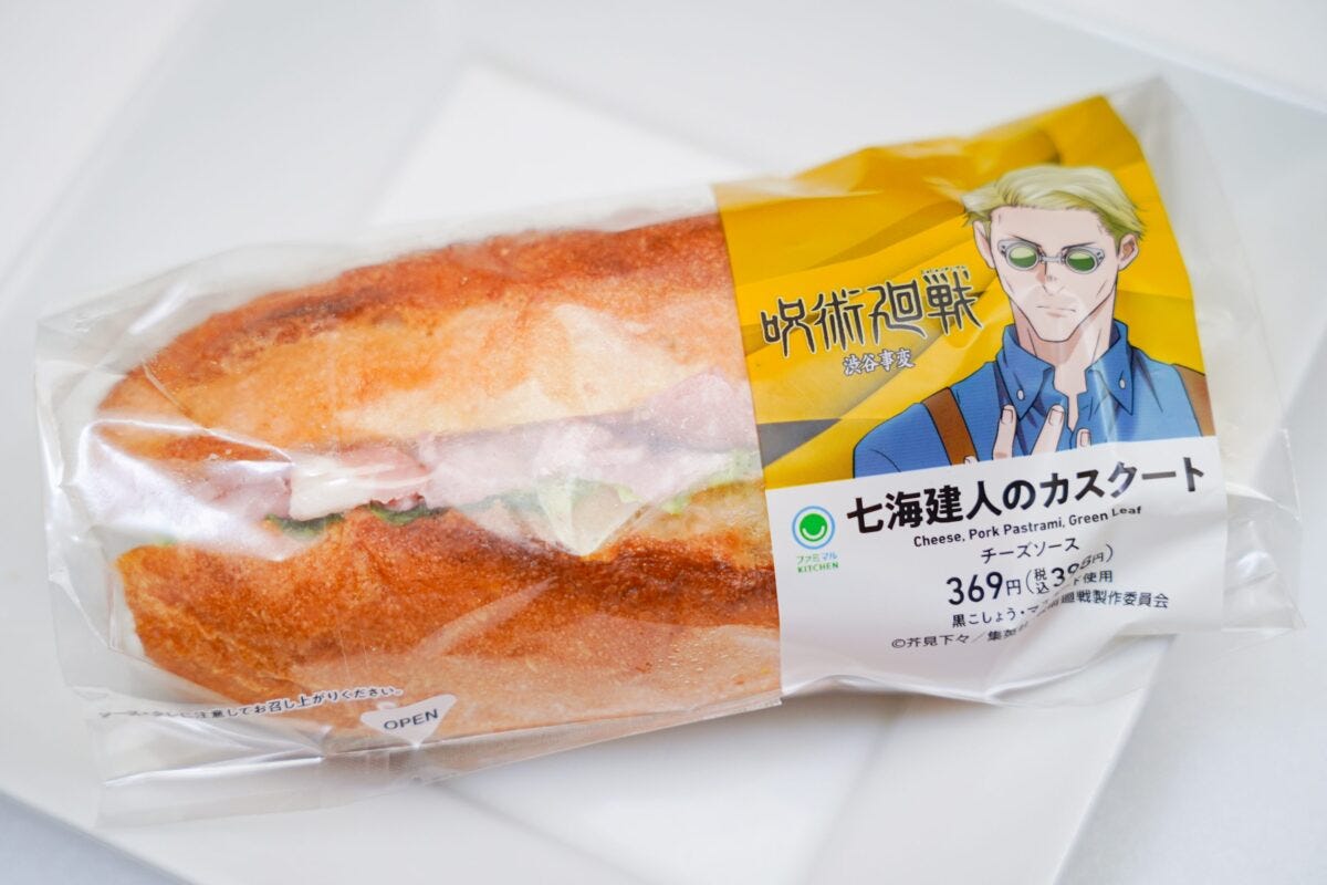 インパクト抜群の『伏黒恵の玉犬白・黒お好み焼』だったが、個人的には1級呪術師のナナミンこと七海建人の商品『七海建人のカスクート』(398円)も最高だった。