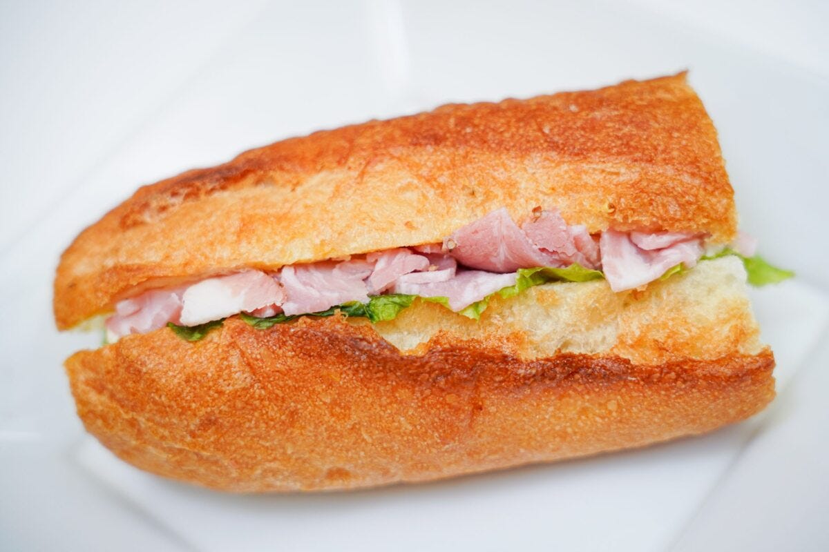 ハード系のパンにまろやか濃厚なチーズソース、パストラミポーク、グリーンリーフを挟み込んでいて、そこに粒マスタードマヨソースで味付け。いい意味で遊んでいない王道の組み合わせはシンプルに美味しく、朝はもちろん、昼食などに食べたい商品であった。