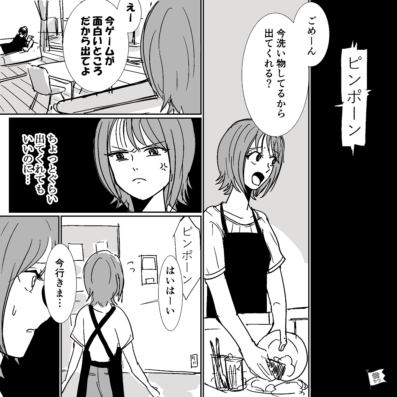 - 【漫画】玄関に“見知らぬ女性”が…彼氏「出ない方がいいよ」私「そうだね…」→次の瞬間、女性の【予想外の行動】に彼氏の気が動転!?