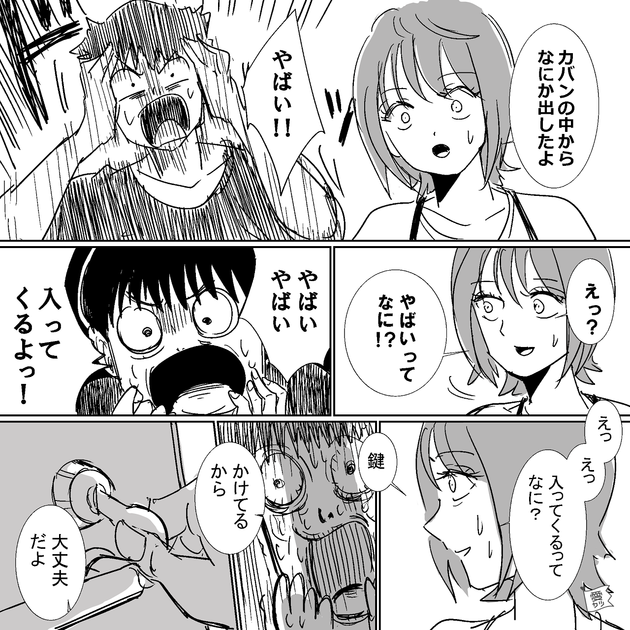 「やばい、やばい!!」とパニックになる彼氏に、主人公は状況が理解できません。