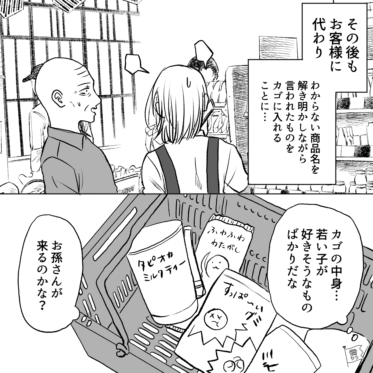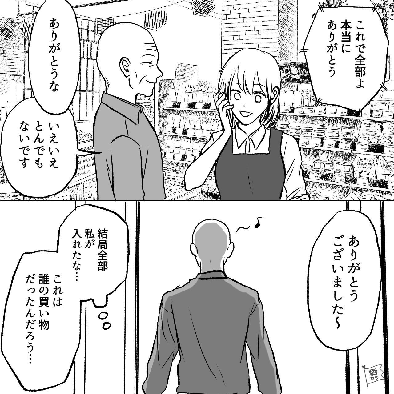 男性客は頼まれていたものを、女性のおかげで無事に買うことができたようでよかったですね。