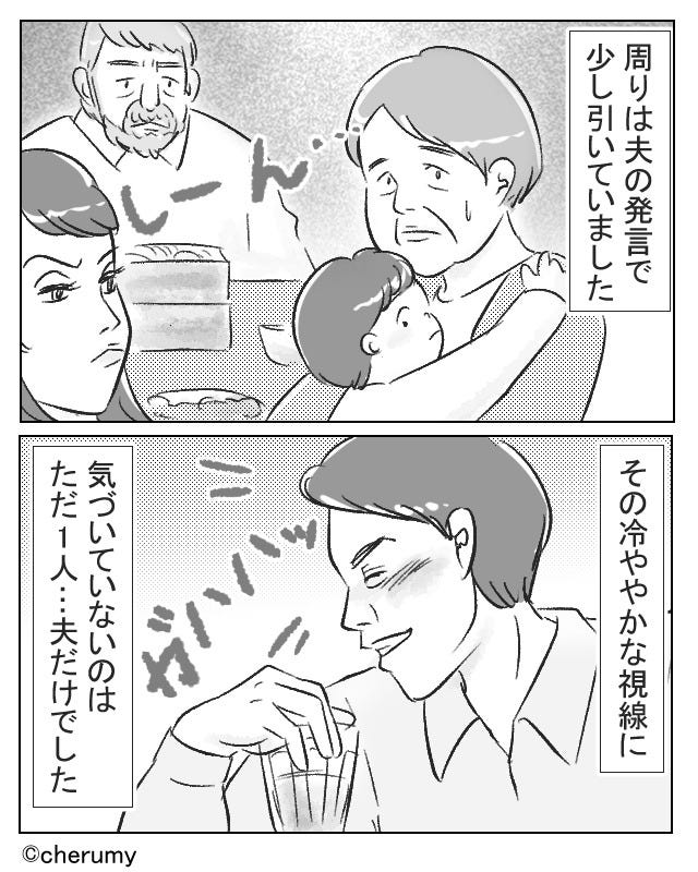 お酒で気が大きくなり、親戚から白い目で見られてしまった夫。